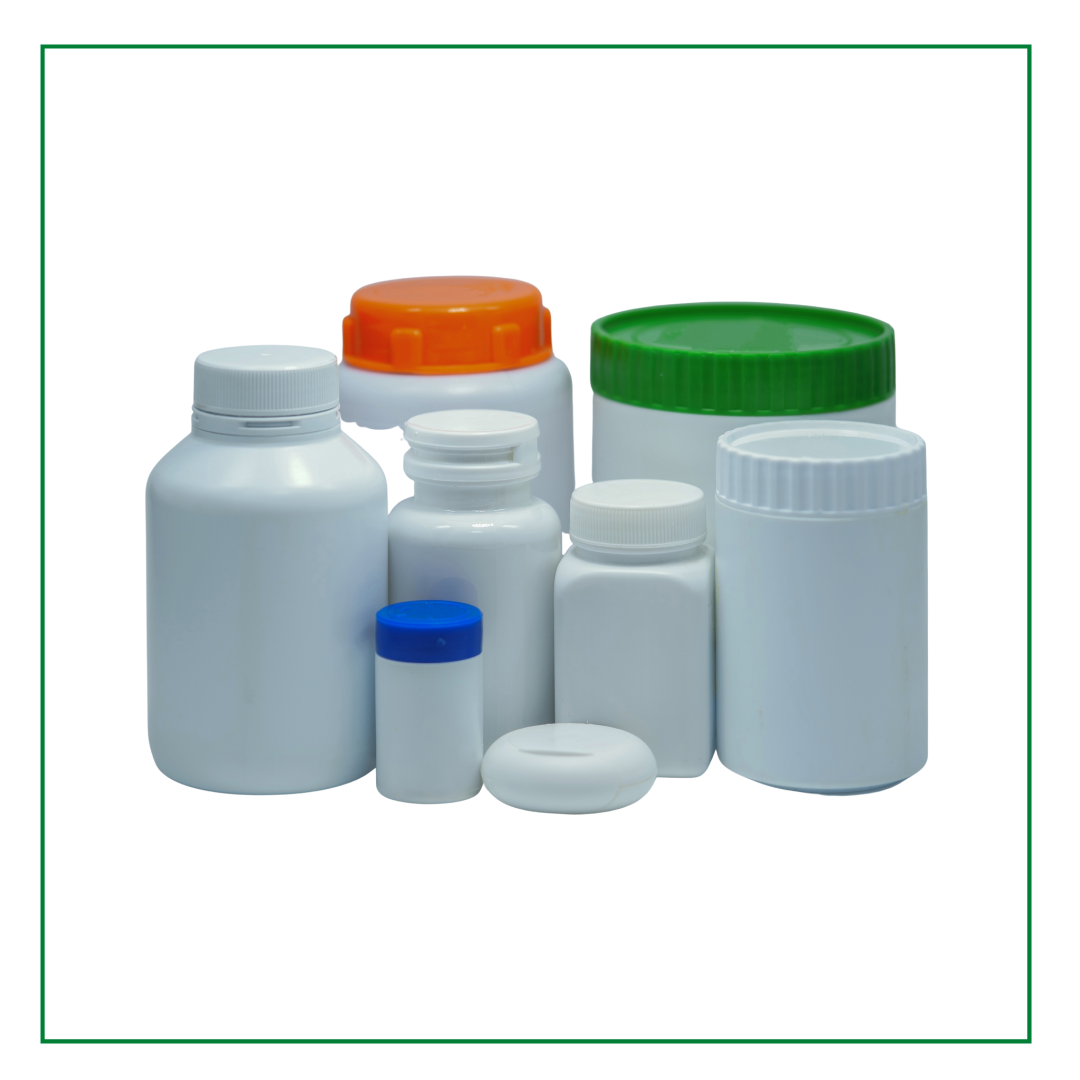 - Plastic HDPE Container with one touch-up cap, screw cap or CRC (for vitamin supplement capsules, powders, etc.)